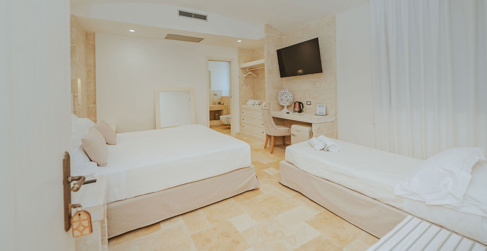 Le camere dispongono di Smart Tv 43 pollici, bollitore, mini bar, cassaforte e scrittoio.